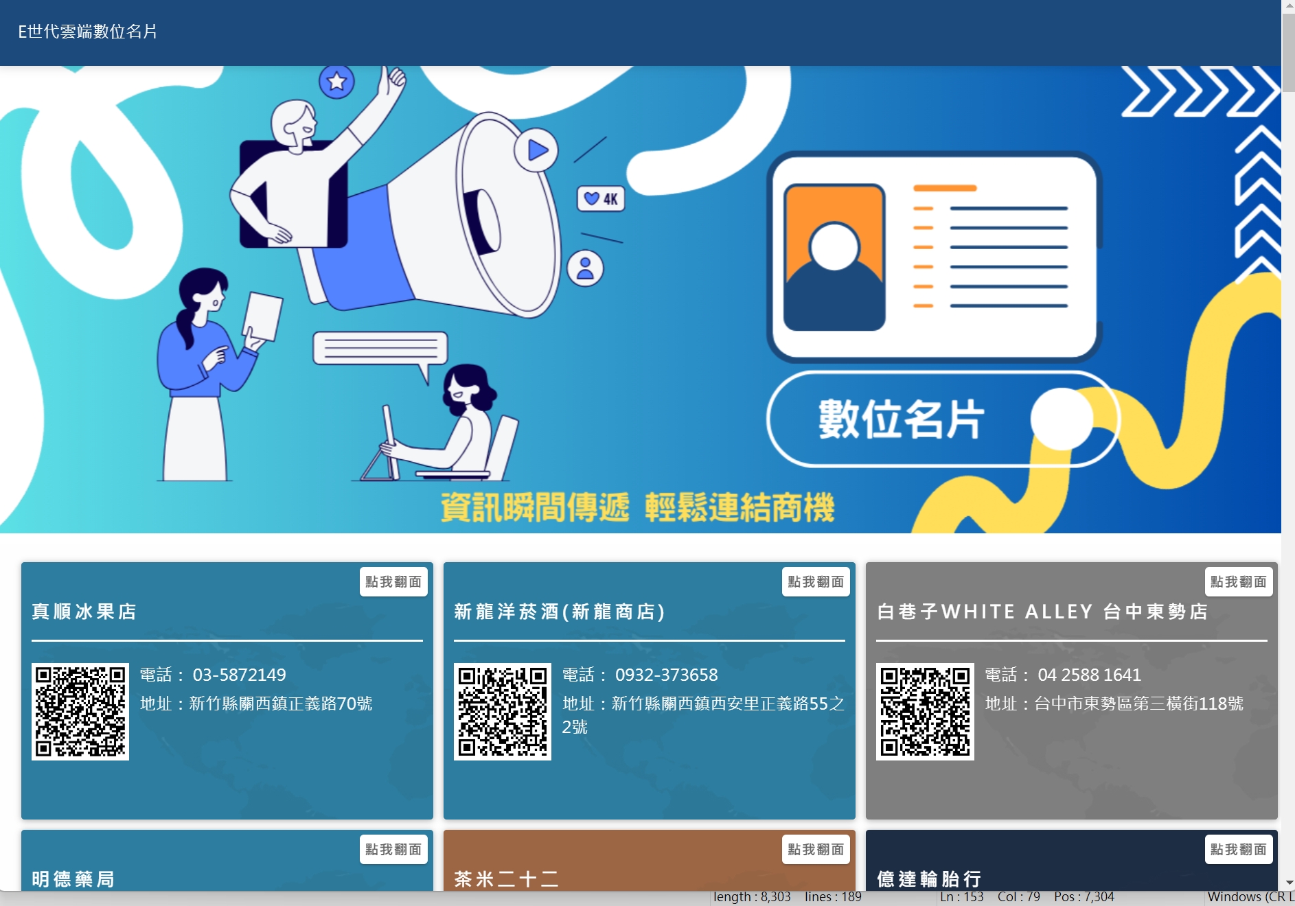 電子版的名片,取代傳統紙本名片,讓使用者可以透過掃描 QR Code 或點擊連結來查看名片資訊。